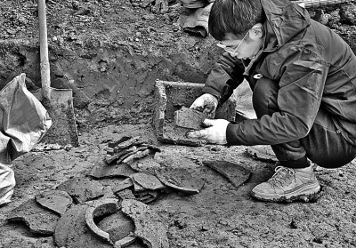 考古工作人员在河南商丘宋国故城遗址发掘现场收集出土的陶器。新华社发
