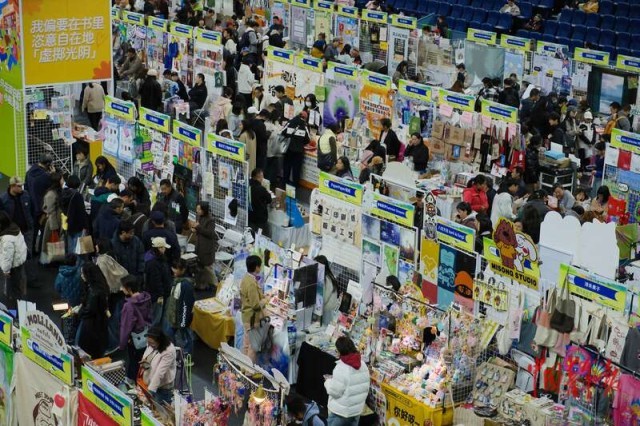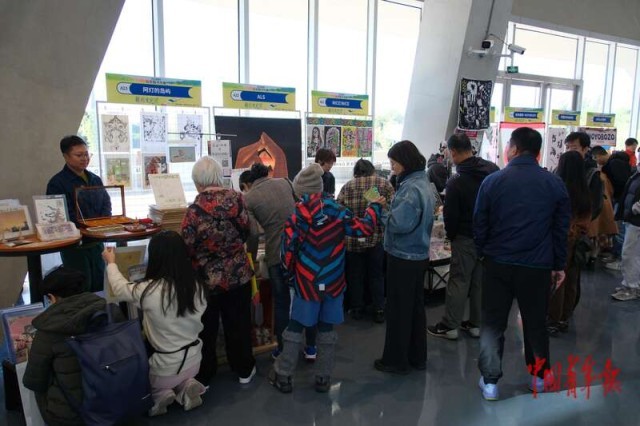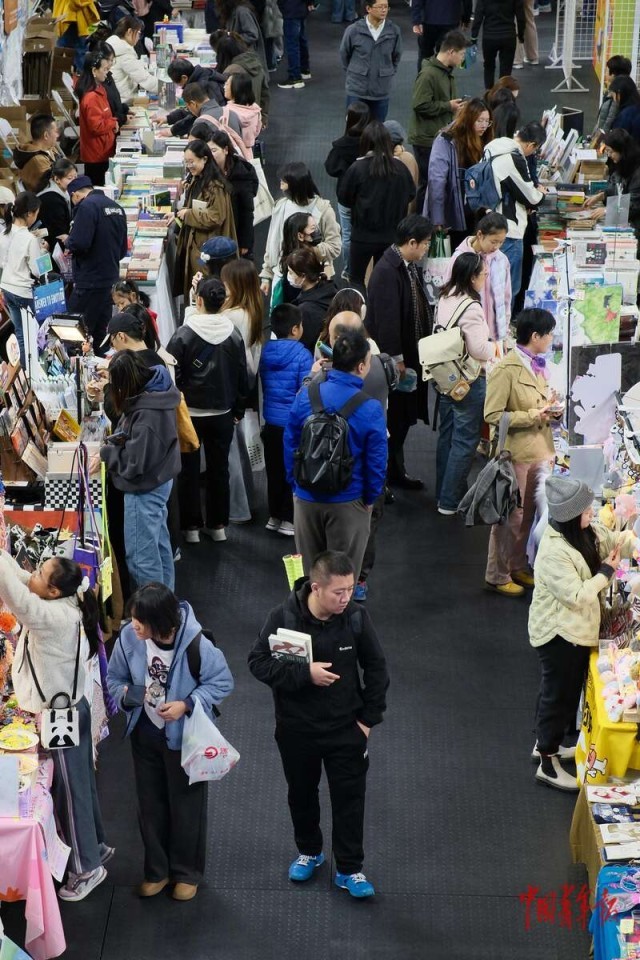 10月19日,北京,钻石球场(国家网球中心),“献给未完成——2025北京图书市集·秋季场”现场,在二楼环廊展区,人们在选购文创产品。