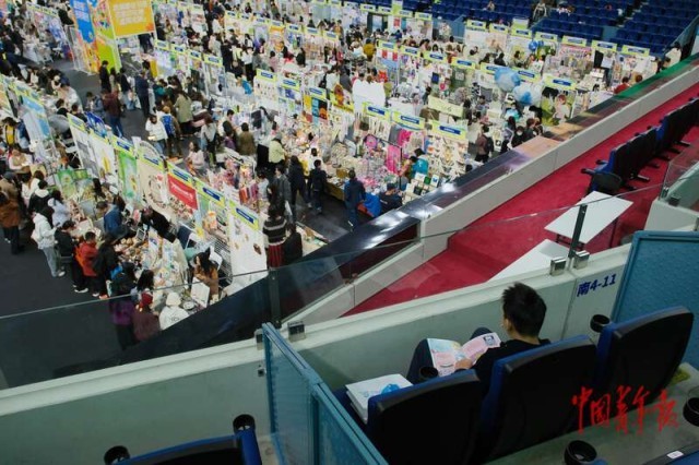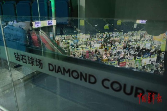 10月19日,北京,钻石球场(国家网球中心),“献给未完成——2025北京图书市集·秋季场”现场,二层看台玻璃映射出市集的热闹景象。中青报·中青网记者 田嘉硕/摄