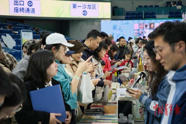 10月19日,北京,钻石球场(国家网球中心),“献给未完成——2025北京图书市集·秋季场”现场,阅读爱好者们在选购图书。中青报·中青网记者 田嘉硕/摄