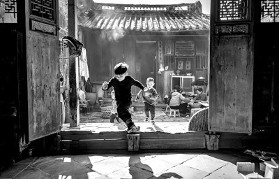 潮州的春节,孩子们在古寨祖屋玩耍。陈文伟摄