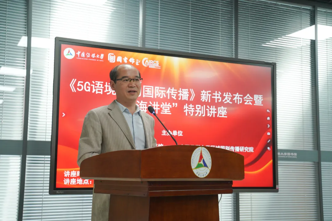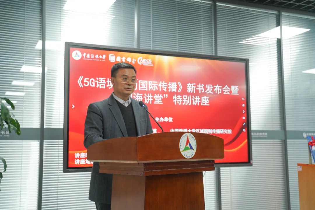 12月10日下午,《5G语境下的国际传播》新书发布会暨“四海讲堂”特别讲座在中国传媒大学图书馆区域国别学学科馆成功举办。新华社、中央广播电视总台、人民出版社等机构代表,该书编撰团队及校内师生代表应邀出席,共同见证著作首发。发布会由中国传媒大学图书馆副馆长侯新宇主持。