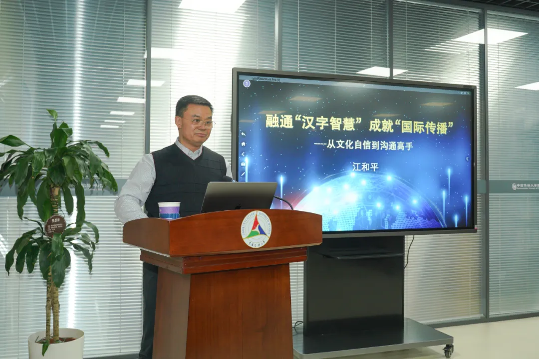在“四海讲堂”特别讲座环节,江和平以《融通汉字智慧 成就国际传播——从文化自信到沟通高手》为题发表演讲。