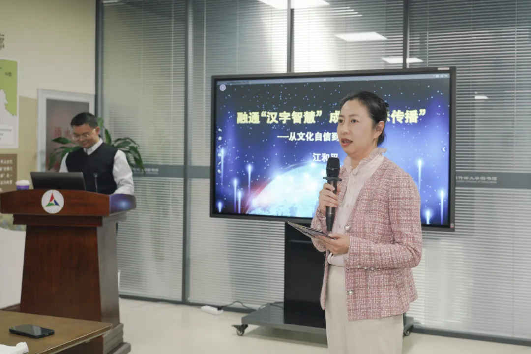 讲座由区域国别传播研究院执行院长周亭主持,她认为,江和平为国际传播工作和国际传播团队管理提出了非常新颖的方法论。他创造性地用汉字的间架结构去解读传播的要素和彼此之间的关系,用汉字体系去构建国际传播的战略框架,用汉字的象形特征去管理团队、凝聚人心,为国际传播自主知识体系做出了贡献。
