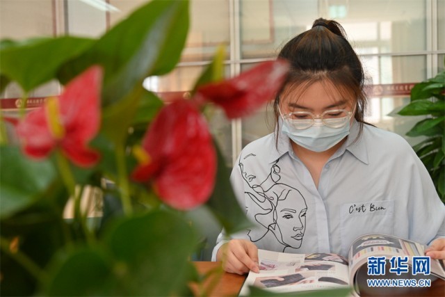 4月24日,蒋云在工作之余阅读自己喜爱的图书。新华网发(杨晓原 摄)