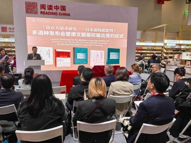 中国青年报客户端讯(中青报·中青网记者 沈杰群)当地时间10月15日,《南京大屠杀研究——日本虚构派批判》多语种新书发布暨德文版版权输出签约仪式在第77届法兰克福会展举行。