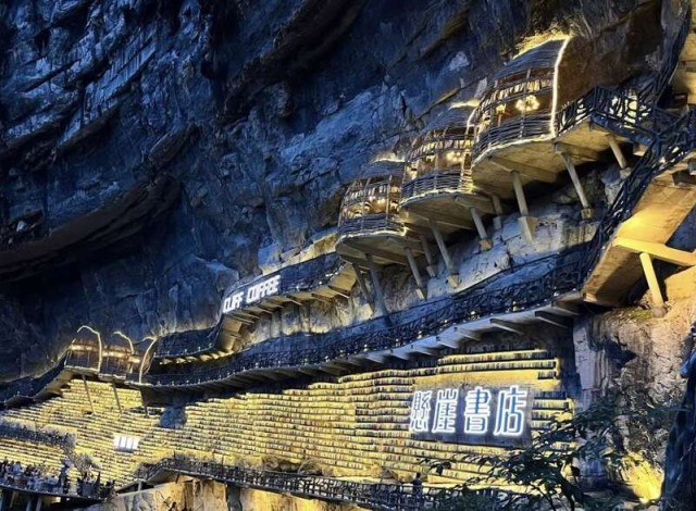 中国青年报客户端讯(中青报·中青网记者 谢洋 实习生 蒋灿)11月20日,中青报·中青网记者随“壮美广西·打卡魅力四射新八桂”文旅融合主题采访团来到广西罗城仫佬族自治县棉花天坑景区,一座悬于喀斯特地貌崖壁之上的书店,成为众多游客慕名而来的网红打卡点。今年5月这座悬崖书店开业后在短视频平台迅速走红,截至今年11月全网播放量已突破1亿次,国庆中秋长假期间更成为河池市最火爆的景区。