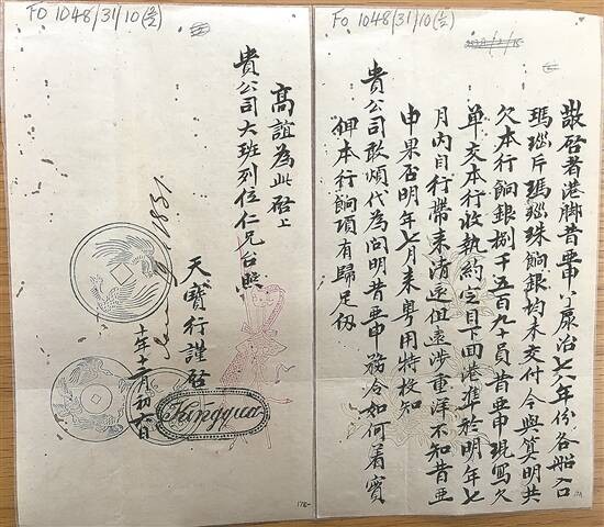 更为重要的是,第三枚圆形图章围绕钱币图案,刻有“周佛万国”字样,反映了天宝行及广州十三行商在国际贸易实践中形成的“万国观”。在与外国商人的持续接触中,十三行商潜移默化受到东西方国家商人远渡重洋、冒着生命财产危险前来广州自由贸易、经商求利思想及平等交换观念的影响,自觉或不自觉地形成更为开放的商业思维,突破传统地域贸易的局限,寻求与世界市场接轨,追求国际利润,将中国的地域化贸易纳入全球贸易体系之中,推进了贸易全球化的发展,推动了以互利为基础的跨文化商贸关系的形成。