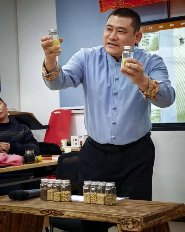 《食藝》作者黄涛在分享会现场讲解五谷标本。华伟/摄