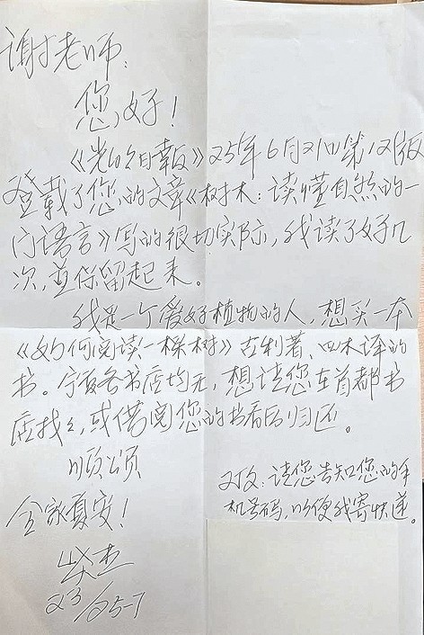 之后两年漫漫的做书时光里,我从书中学习到很多知识,也开始观察身边的树木,跟身边热爱树木的人产生了意想不到的联结。2025年春天,我们终于出版了这本书,刚上市就获得了不错的口碑与销量。这是我做的第一本科普书,也是从业十年来策划的第一本畅销书,我不由得百感交集,发了一条小红书,引起了光明日报编辑的关注,我们共同策划邀请北京林业大学的谢屹教授为本书撰写了书评《树木:读懂自然的一门语言》。