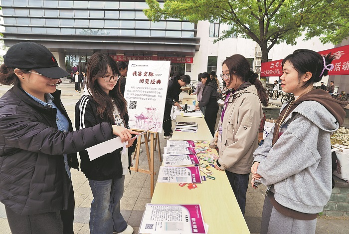 4月14日,北京建筑大学的同学们参与“我答文脉,阅见经典”活动。