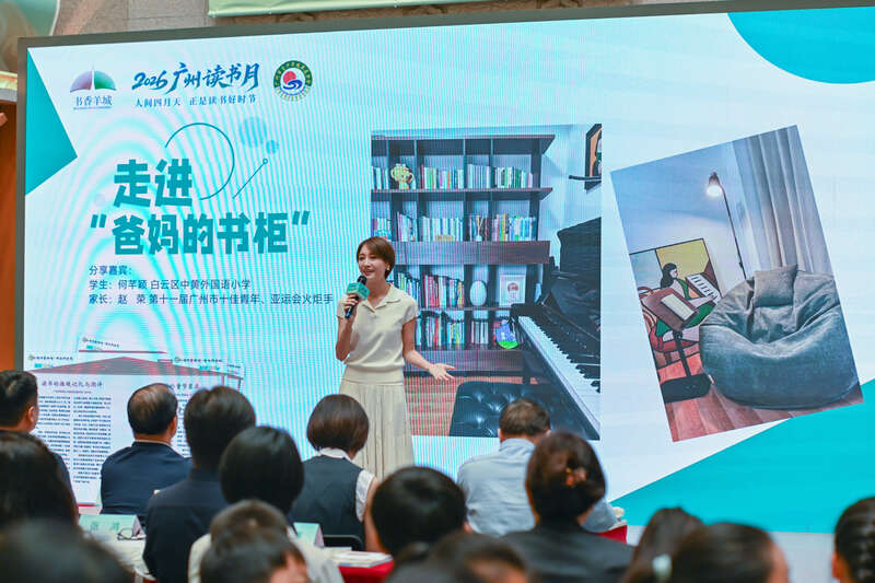 活动在小学生带来的《为中华之崛起而读书》《如果没有李白》《南国薪火》等朗诵节目展演中启动。主办方设置“爸妈的书柜”分享环节,亚运会火炬手、家长代表赵荣分享亲子阅读故事:“我和孩子有一个共用的书架,我们的书各占一半,这样有时我会翻读她的书,她也可以了解我的书单。”