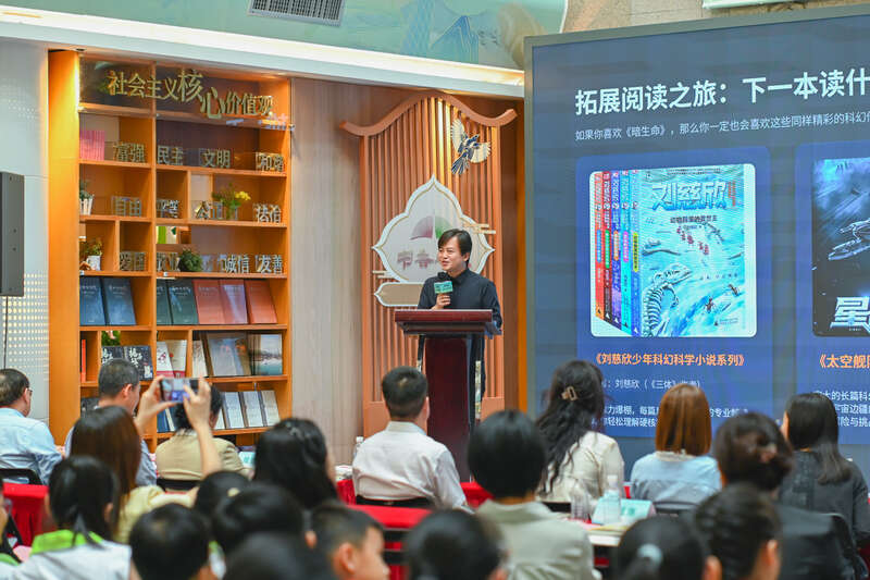 全国优秀儿童文学奖得主、中山大学中文系创意写作教研室主任王威廉,以自己的科幻作品《暗生命传奇》为切入口,围绕阅读方法、文学创作与科幻想象力等主题,带来一堂科幻文学小课堂。随后,王威廉与小学生代表结对,启动“大手牵小手”小作家培育计划。